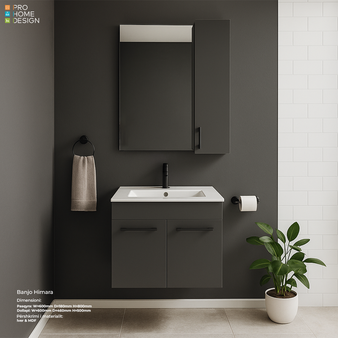 Me dizajn modern dhe linja të pastra që krijojnë harmoni në çdo detaj. Lavaman modern dhe dollapi me pasqyrë që kombinojnë funksionalitetin me stilin.